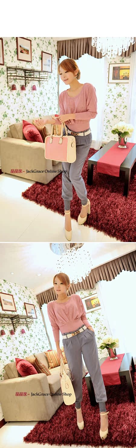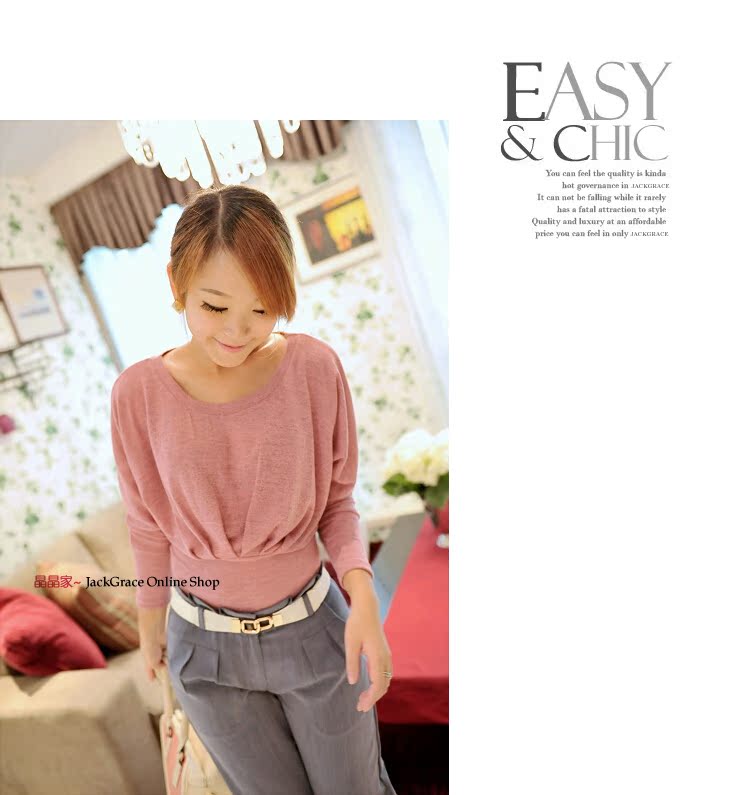 simple texture ~ hem waist bat sleeve knit shirt and white